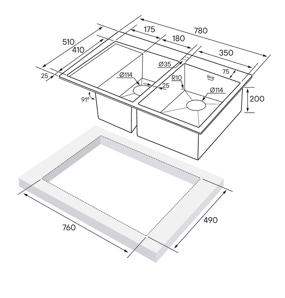 Функциональное плоское крыло; Готовое отверстие для кухонного смесителя.