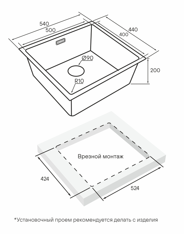 Мойки LASSAN UNI могут быть установлены как врезным способом поверх столешницы, так и под столешницу (подстольный монтаж).