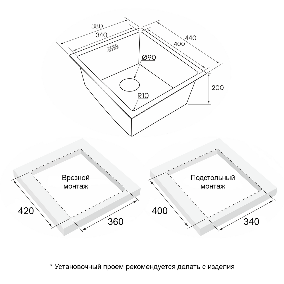 Отверстие под смеситель Нет