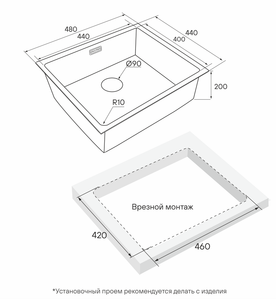Мойка кухонная из нержавеющей стали NEXT 48 UNI.
