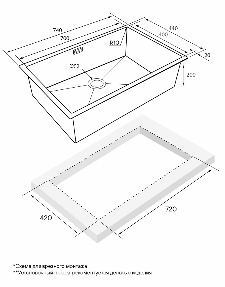 Возможен подстольный, накладной монтаж или монтаж вровень со столешницей.