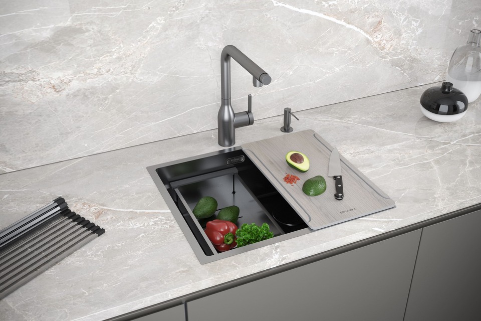 Металлическая мойка Paulmark NEXT-PRO 54 UNI PM705445-GM Вороненая сталь GM