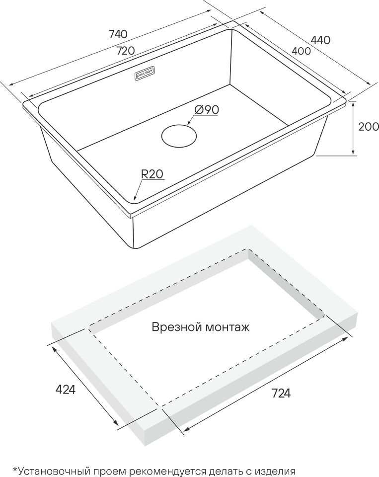 Мойки VISTA UNI могут быть установлены как врезным способом поверх столешницы, так и под столешницу (подстольный монтаж).