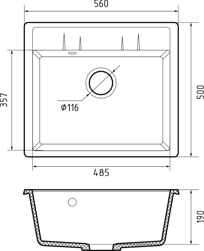Глубина основной чаши, мм 190
