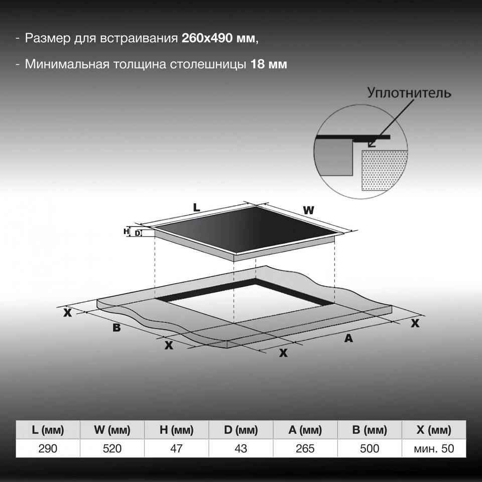 Размер варочной панели Домино