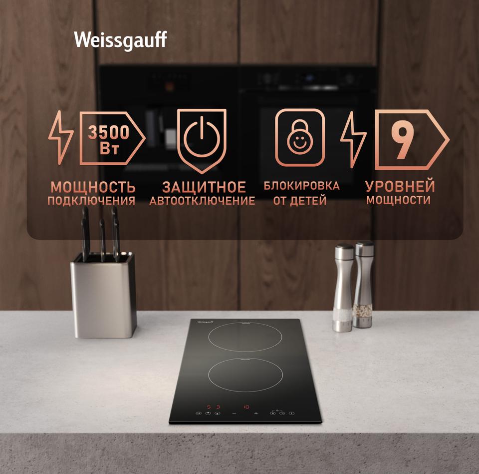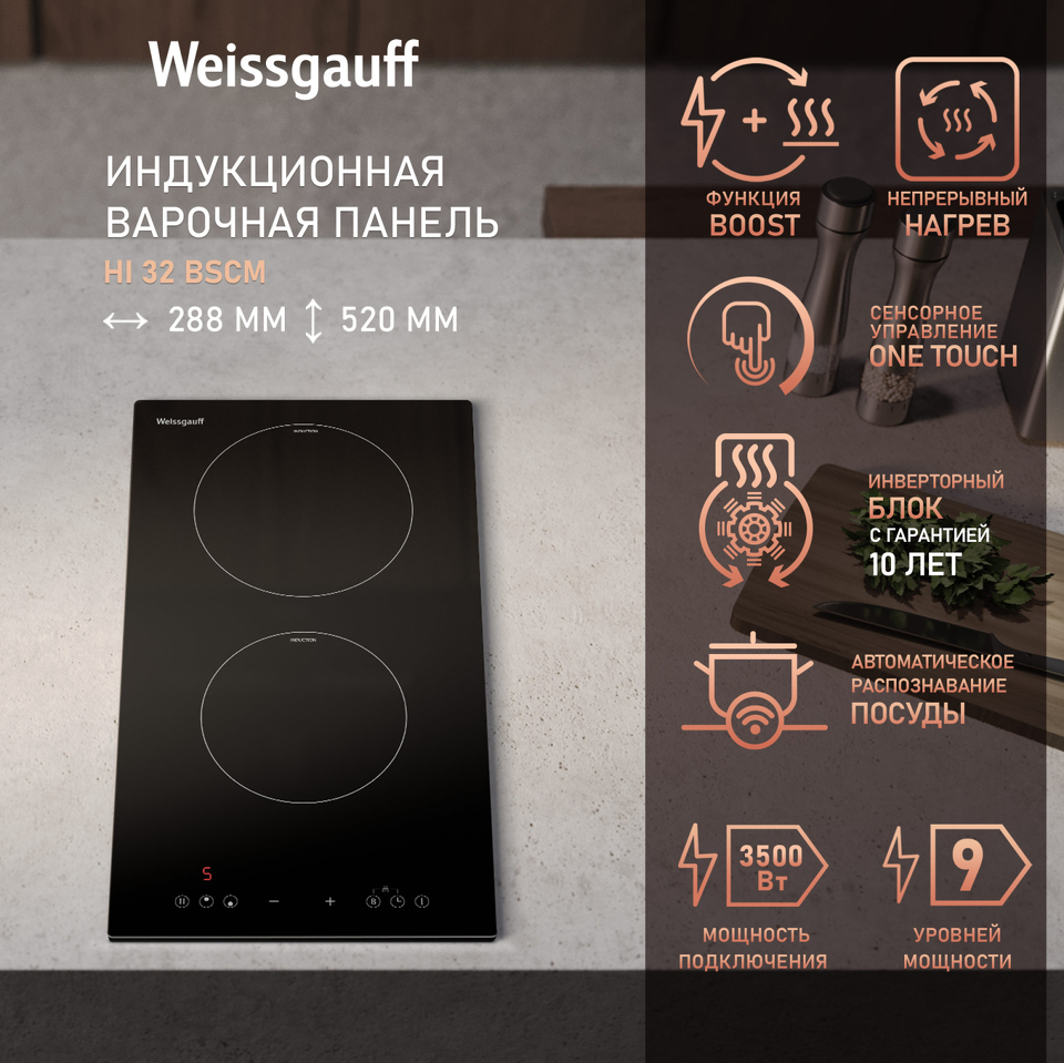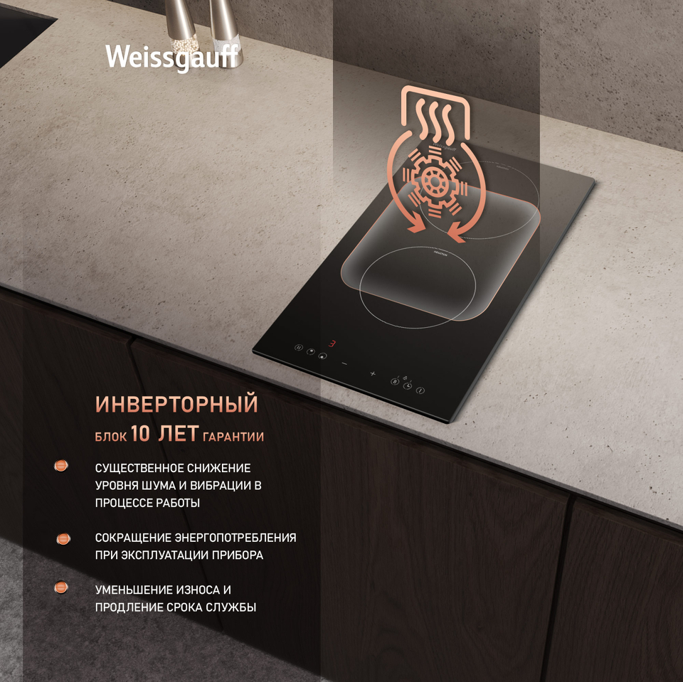 Индукционная панель Weissgauff в дизайне "Домино", оснащенная технологией непрерывного нагрева, выводит на новый уровень понимание того, насколько эффективной может быть компактная индукционная варочная поверхность!