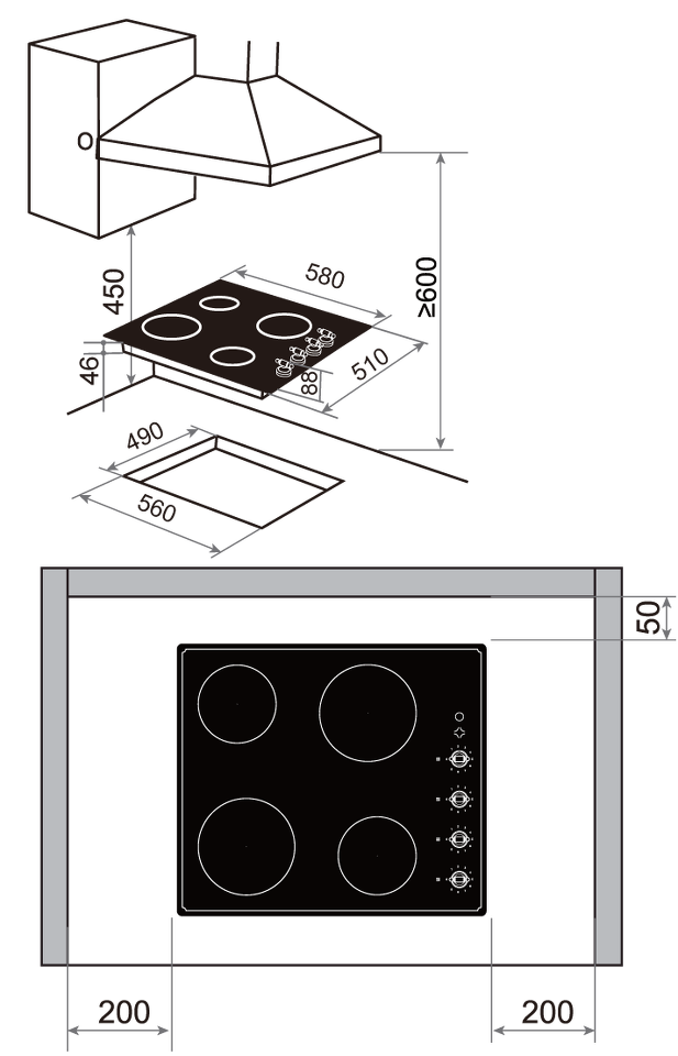 Размер варочной панели 60см