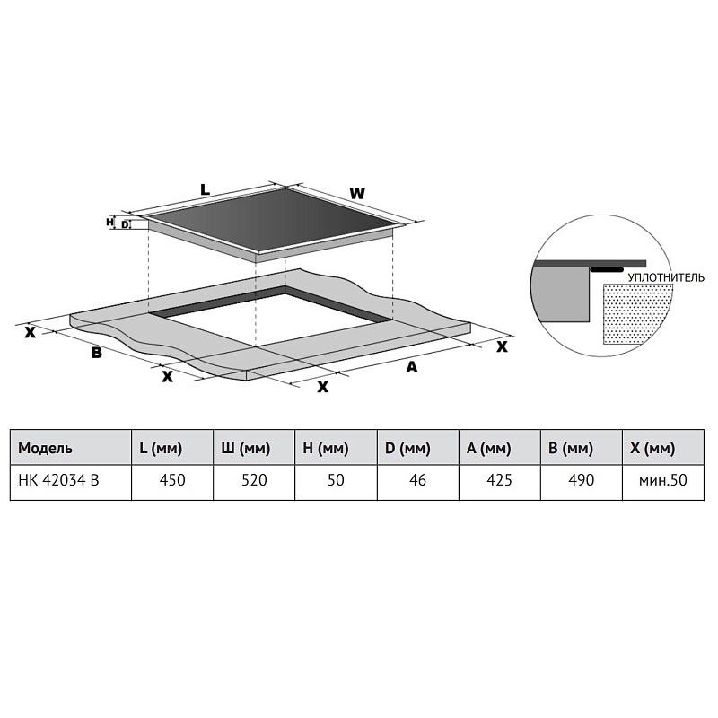 Размер варочной панели 45см