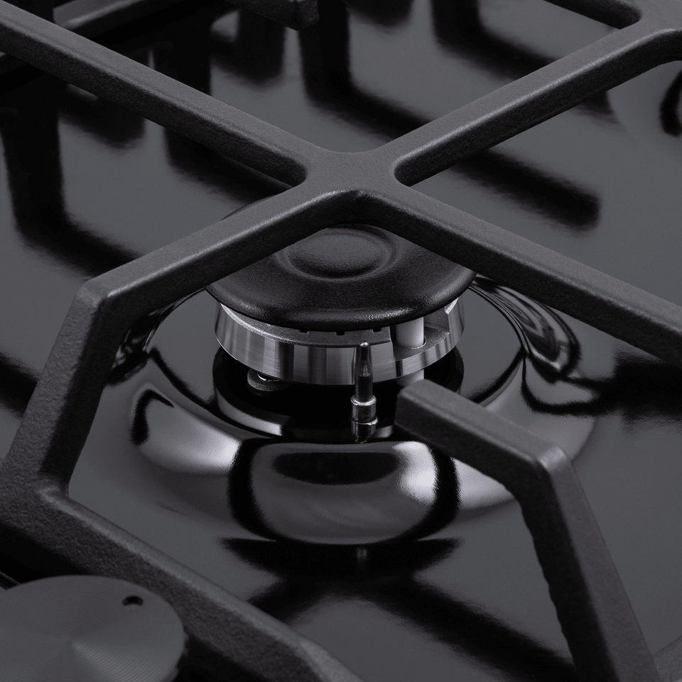Обновленные массивные чугунные решетки со сплошным крестообразным соединением над конфорками придают устойчивость посуде даже с самым маленьким диаметром дна.