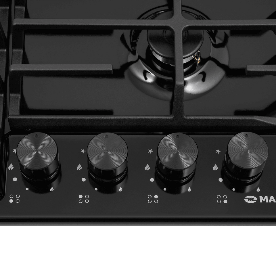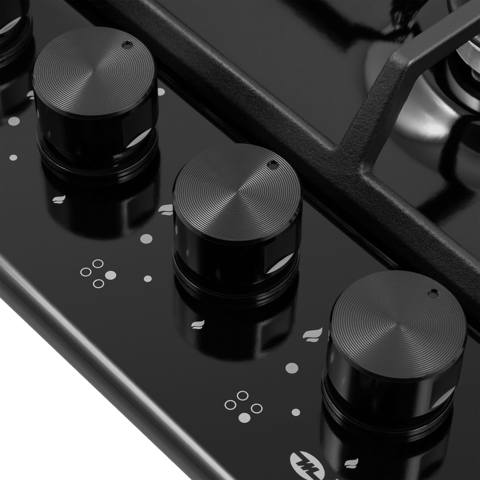 Панель оснащена 4 газовыми конфорками мощностью 3800, 1700, 2600, 1000 Вт. Благодаря специальной конструкции конфорок, они не перегревают чугунные решетки и ручки управления.