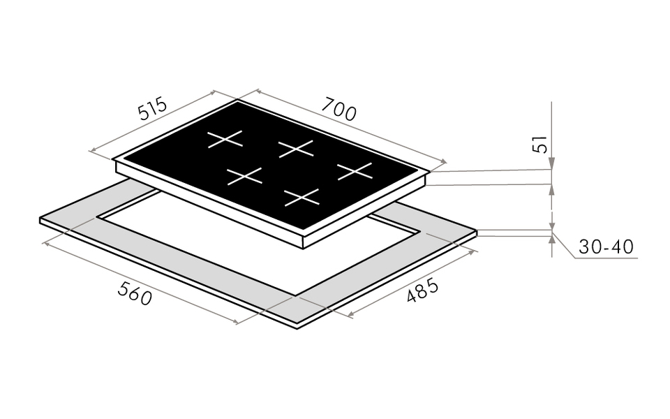 Размер варочной панели 70см