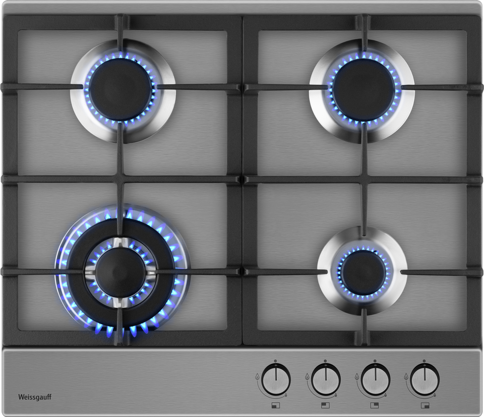 Новое поколение встраиваемых независимых газовых панелей Weissgauff представляет модель шириной 60 см, оснащенную 4 эффективными конфорками (в том числе и WOK-конфорку с трехконтурным пламенем), решетками из высококачественного чугуна, функцией автоматического электроподжига и системой безопасности "газ-контроль". Дизайн, исполненный в нержавеющей стали, дополнит безупречный облик модели, сделав её не только практичным решением для приготовления любого блюда, но и настоящей жемчужиной в интерьере вашей кухни!
