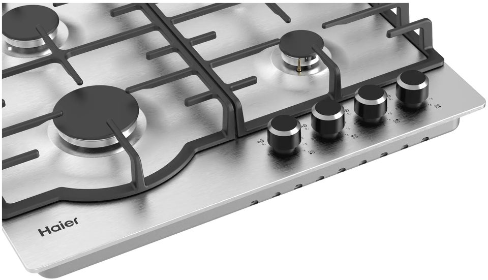 Газовая варочная панель Haier HHX-M64RNVX с основанием из высококачественной нержавеющей стали, выступающей над уровнем столешницы всего на несколько миллиметров, смотрится лаконично и стильно. В каждую конфорку интегрирован электроподжиг — пламя легко зажигается без спичек, а 9-ти ступенчатая регулировка пламени обеспечивает более точный контроль режима приготовления. Если вдруг пламя случайно погаснет, сработает функция «газ-контроль» — подача газа будет автоматически перекрыта. Чугунные решётки обеспечивают устойчивость посуды во время готовки, они съёмные — это облегчает уход. Поворотные регуляторы управления конфорками, изготовленные из металла, вынесены в переднюю часть панели — для максимального удобства пользователя. Haier HHX-M64RNVX — стильная, удобная, безопасная и практичная варочная панель для вашей кухни.