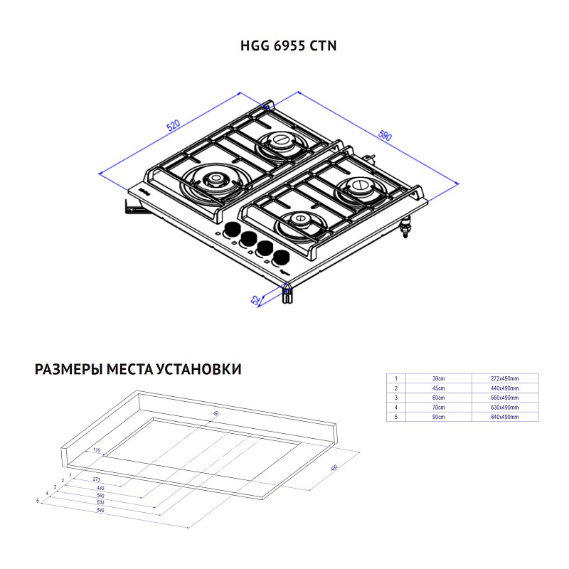 Размер варочной панели 60см