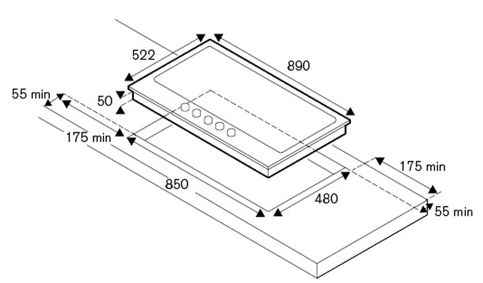 Размер варочной панели 90см