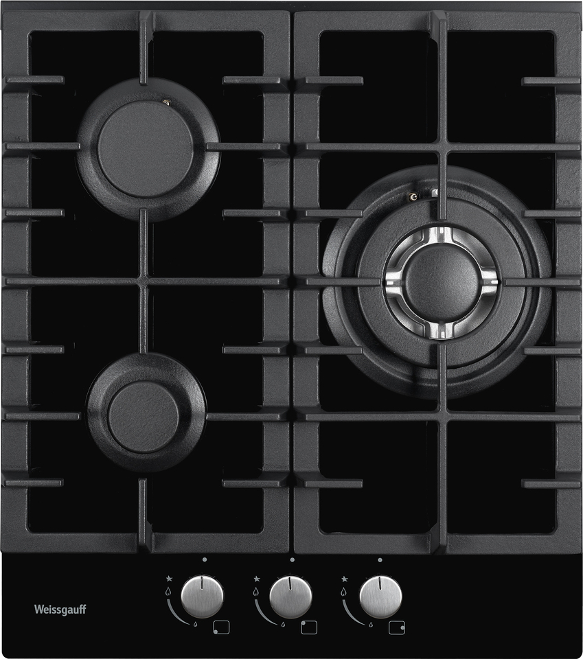 Встраиваемая независимая газовая панель Weissgauff шириной 45 см, исполненная в закалённом чёрном стекле - это стильное и компактное решение для вашей кухни!