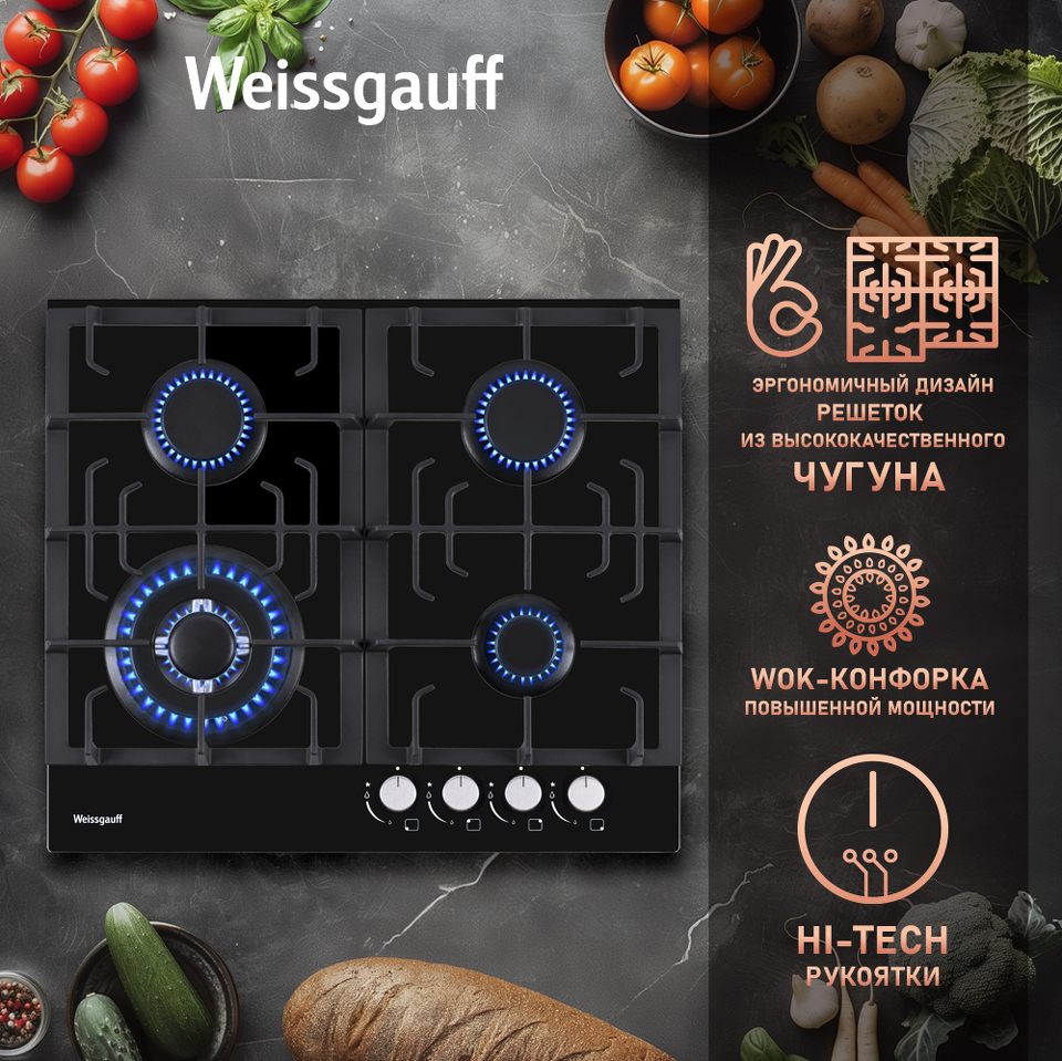 Варочная панель Weissgauff, оснащённая современными решетками из высококачественного чугуна, выполненными в уникальном эргономичном дизайне - это поистине современная и функциональная модель Weissgauff, исполненная в чёрном закалённом стекле