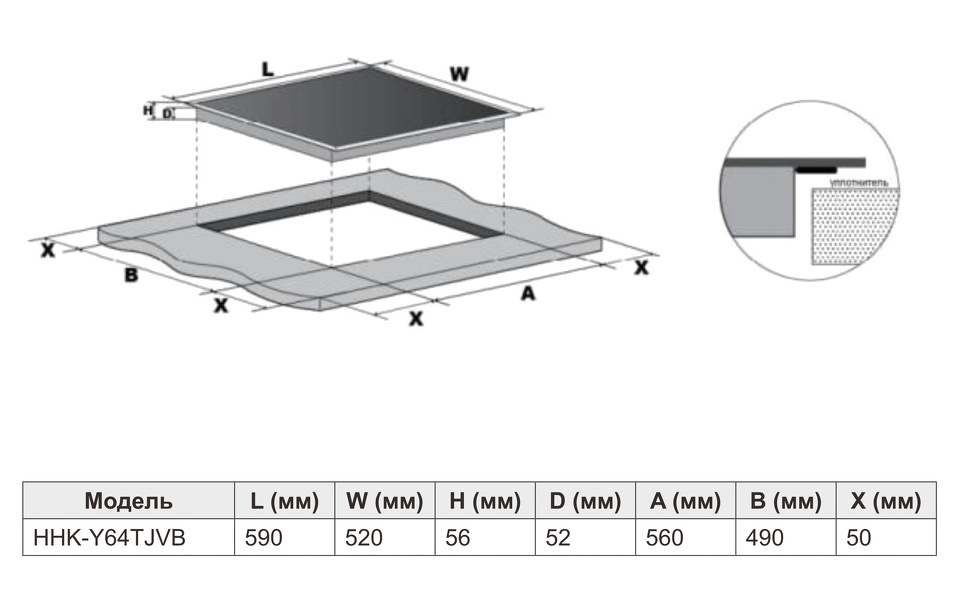 Варочная поверхность HHK-Y64TJVB с индукционным типом нагрева — современное и практичное решение для вашей кухни. Индукционный тип работы обеспечивает быстрый и экономичный нагрев, индукционная панель не нагревается, если на ней нет посуды, что предотвращает возможность ожогов. Модель оснащена сенсорным слайдерным управлением, а функция расширения и объединения зон позволяет использовать каждую сторону панели, как одну зону. Кроме этого, автоматическое отключение нагрева по истечении нужного времени при помощи настройки таймера освободит вас от лишних забот во время готовки.