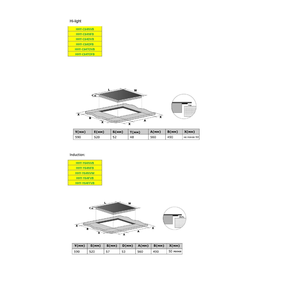 Размер варочной панели 60см