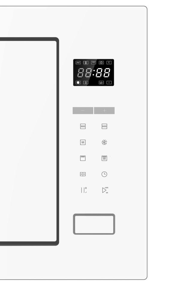 Встраиваемая микроволновая печь с грилем HMX-BTG259W дополнит комплект встраиваемой техники на Вашей кухне, особенно гармонично будет смотреться в комплекте с белым духовым шкафом. Вместительная внутренняя камера объемом 25 литров с поворотным столом и встроенный гриль позволят быстро и эффективно подогреть или приготовить Ваше блюдо. Микроволновая печь оснащена автоматическими режимами размораживания и приготовления таких блюд, как пицца, макароны, картофель или овощи (всего 8 автоматических режимов).