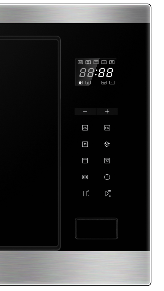 Встраиваемая микроволновая печь с грилем HMX-BTG259X дополнит комплект встраиваемой техники на Вашей кухне, особенно гармонично будет смотреться в комплекте с духовым шкафом с отделкой из нержавеющей стали. Вместительная внутренняя камера объемом 25 литров с поворотным столом и встроенный гриль позволят быстро и эффективно подогреть или приготовить Ваше блюдо. Микроволновая печь оснащена автоматическими режимами размораживания и приготовления таких блюд, как пицца, макароны, картофель или овощи (всего 8 автоматических режимов).