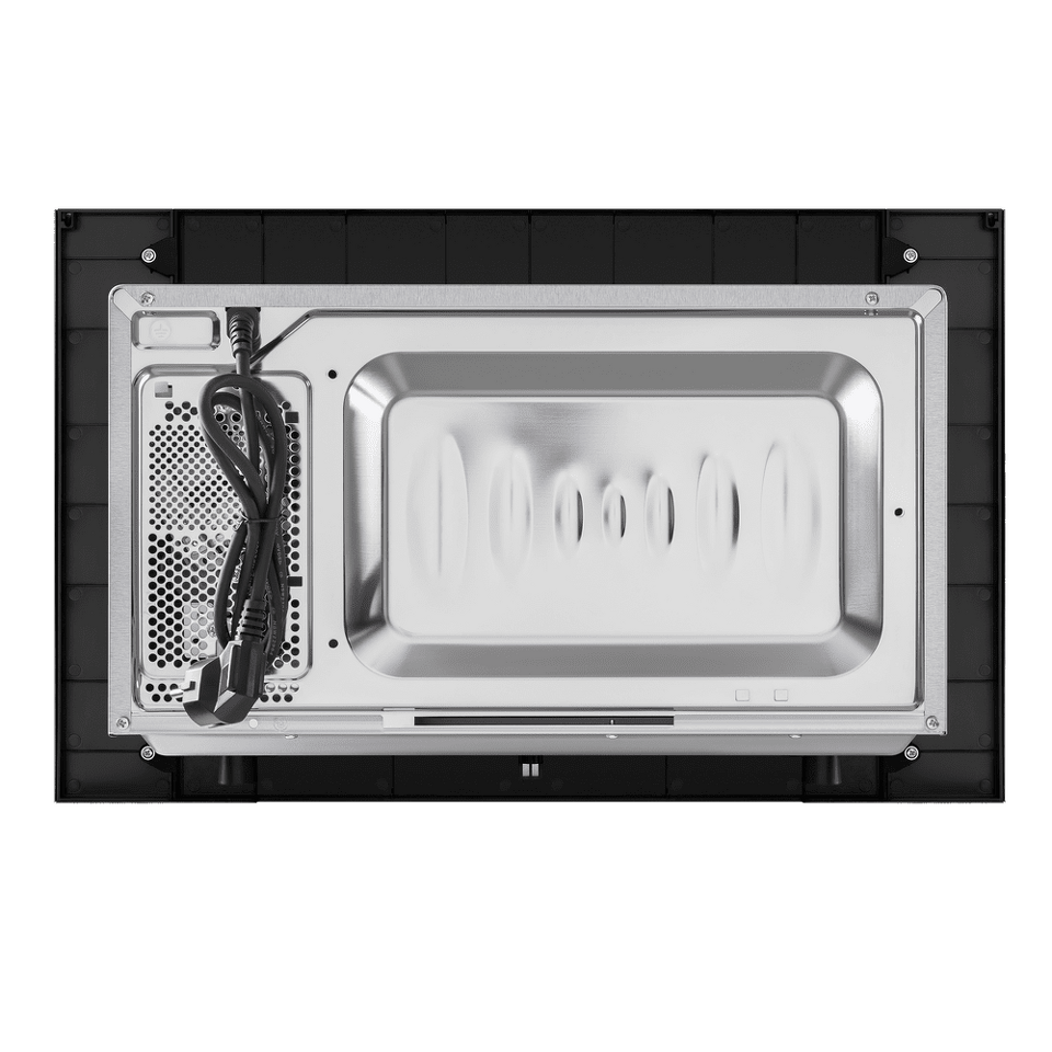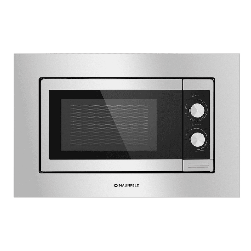 Встраиваемая микроволновая печь выполнена из полированного металла с черными вставками. Классическая ширина 60 см позволяет поместить ее в любой кухне.