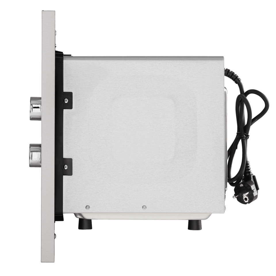Внутренняя камера, сделанная из высококачественной нержавеющей стали толщиной 0,9 мм, имеет объем в 20 л. Внутри камеры установлен кварцевый гриль, вращающееся кольцо со стеклянным столиком и галогеновое освещение.
