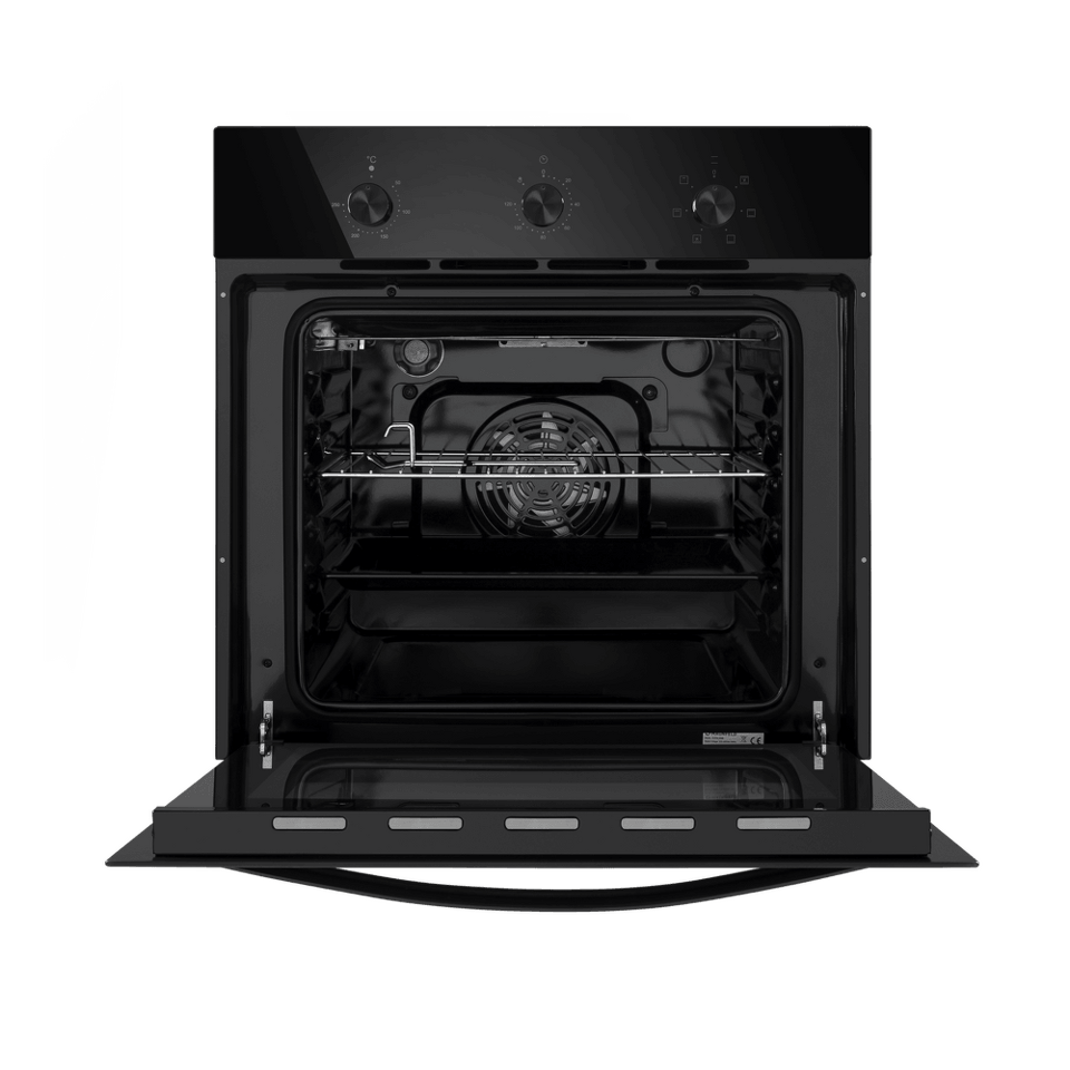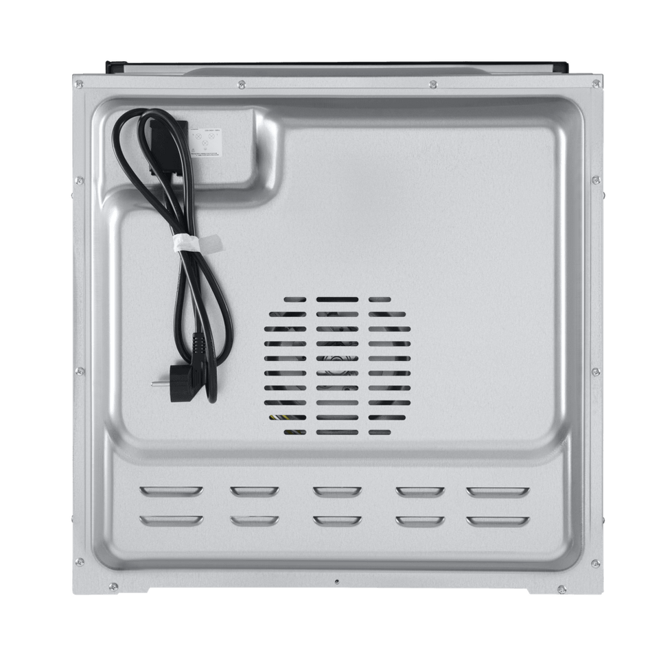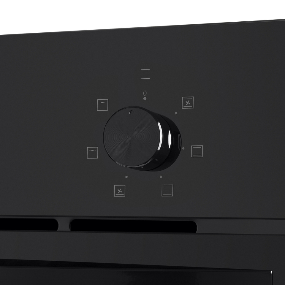 Классический электрический встраиваемый духовой шкаф черного цвета объемом 56 л и шириной 60 см. В данной модели предусмотрено 4 уровня боковых  направляющих. Дверца духового шкафа состоит из 2 стекол, что создает холодный фронт и делает процесс приготовления безопасным, исключая возможность ожога при касании. Благодаря тангенциальному охлаждению мебель, расположенная рядом с духовкой, также не нагревается. На внутреннем стекле нанесены трамп-линии, которые скрывают содержимое неработающей духовки, но совершенно не мешают наблюдать за процессом готовки при включенном мощном внутреннем освещении.