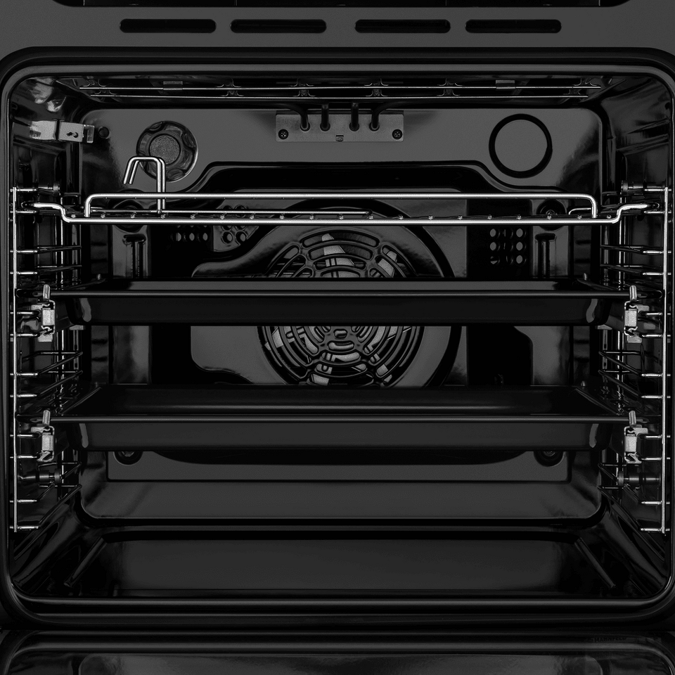 Тангенциальное охлаждение, реализованное в данной модели, минимизирует передачу тепла от духовки предметам, находящимся рядом, например мебели. Дверца состоит из 3-х стекол, что создает холодный фронт и делает процесс приготовления безопасным, так как внешнее стекло практически не нагревается.