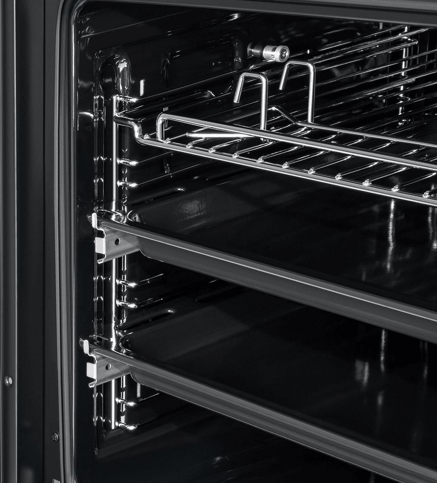 Объем 76 л при стандартной ширине 60 см позволяет готовить одновременно несколько блюд, разместив решетку или противень на одном из 6-ти уровней боковых направляющих. Два уровня оснащены удобными телескопическими направляющими. Внутреннее покрытие камеры выполнено из специальной легкоочищающейся эмали черного цвета.
