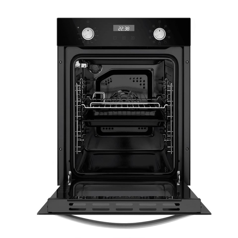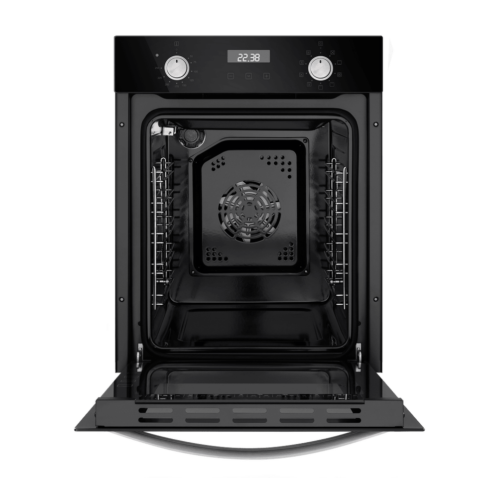 Компактный электрический встраиваемый духовой шкаф объемом 49 л. и шириной всего 45 см позволяет готовить ваши любимые блюда, разместив решетку или противень на одном из 5 уровней боковых направляющих. Внутреннее покрытие камеры выполнено из специальной легкоочищающейся эмали черного цвета.