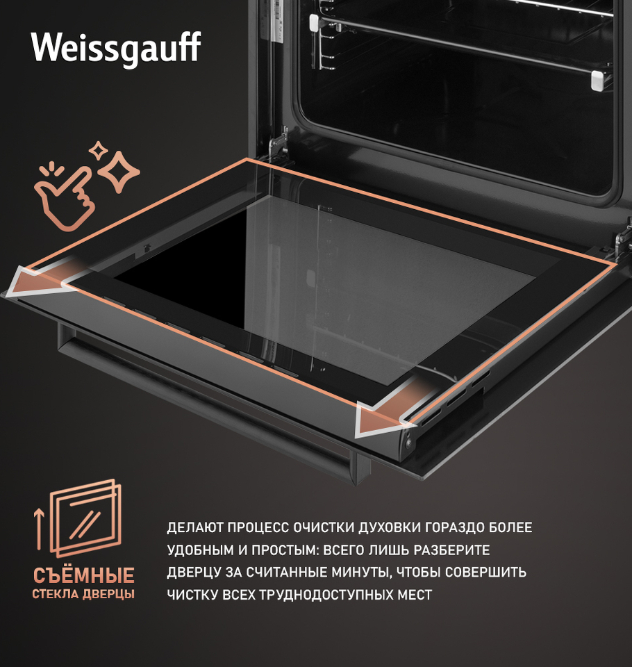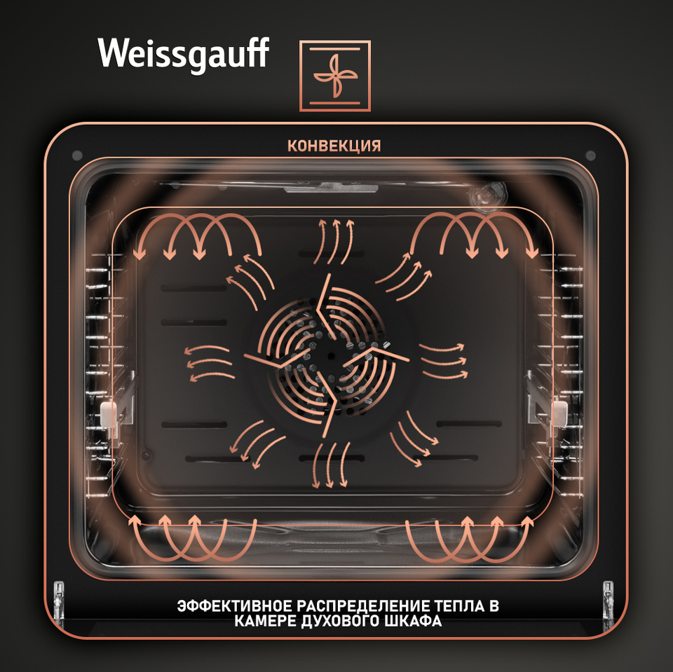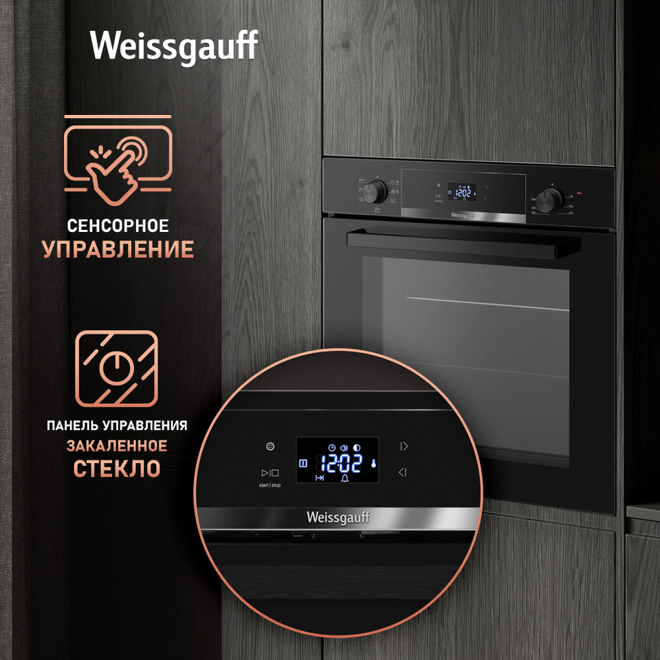Новое поколение электрических духовых шкафов от Weissgauff предлагает модель, выполненную в черном цвете в дизайне BLACK EDITION. Управление, реализованное сочетанием чувствительного сенсорного блока и утапливаемых черных рукояток PIPO, дополняет богатый функционал, представленный сразу 7 режимами! А фантастический увеличенный объем XL 72 литра дополнит совершенство возможностей этого устройства! Благодаря всему этому вы сможете полностью управлять процессом приготовления пищи, добиваясь идеального результата каждый раз! Духовой шкаф Weissgauff станет не только отличным приобретением для вашей кухни, но и настоящим украшением интерьера, отражающим все благородство вашего вкуса и стиля!