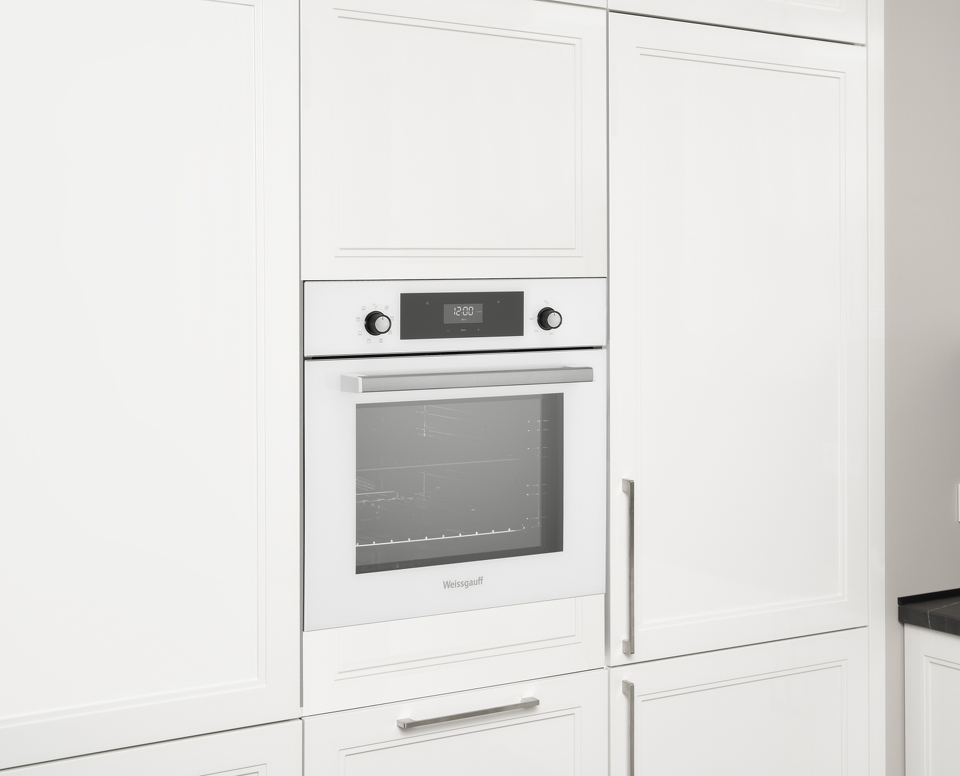 Электрический духовой шкаф от Weissgauff, выполненный в белом цвете, оснащённый телескопическими направляющими, плавными доводчиками дверцы SOFT CLOSE, утапливаемыми рукоятками PIPO, тройным стеклом дверцы, дисплеем с сенсорным управлением и 9 режимами работы - это сочетание великолепной функциональности и непревзойденной практичности!