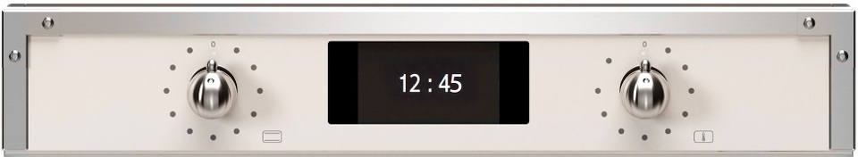 Духовой шкаф имеет 7 режимов работы, включая конвекцию, гриль и приготовление на пару. Также в вашем распоряжении 15 предустановленных программ. Управление и выбор функций простое и понятное: сенсорный дисплей и две поворотные ручки. Фронт цвета слоновой кости отделан хромированной фурнитурой, поэтому прибор отлично впишется в современный и классический кухонный дизайн светлых оттенков. Очищать камеру необходимо с помощью пара — поставьте внутрь емкость с водой и включите специальный режим.