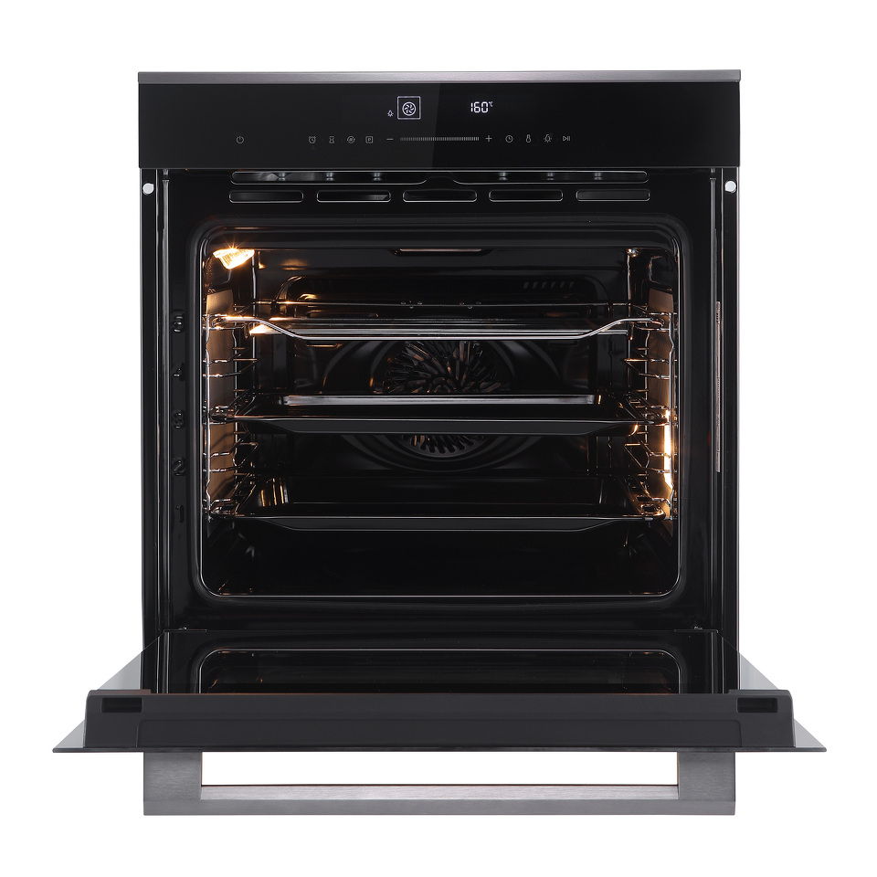 Сенсорное управление духового шкафа позволяет быстро и точно выбрать необходимые параметры приготовления, которые отображаются на большом дисплее, превращая процесс приготовления максимально удобным.