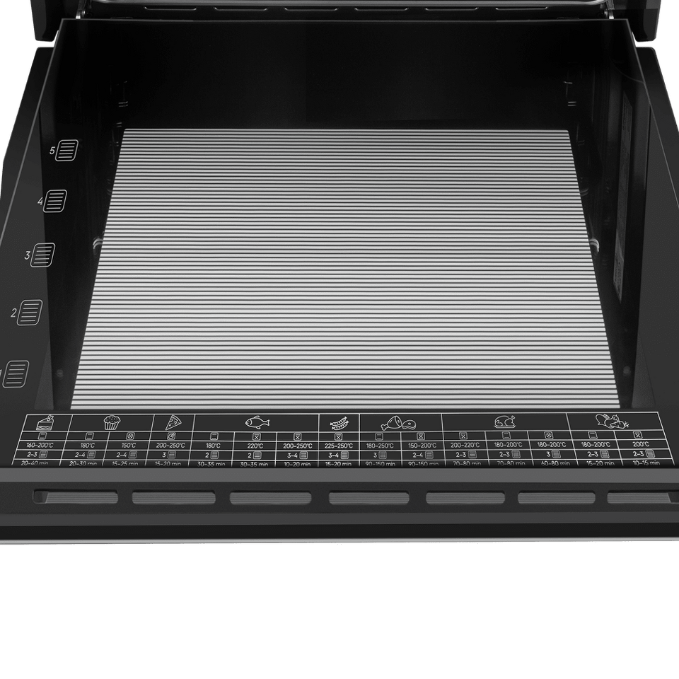 Пространство камеры оформлено практичным эмалевым покрытием «легкой очистки», которое не боится загрязнений. Благодаря мощному электрическому грилю и системе конвекции вы сможете легко готовить самые разные блюда: от хрустящей выпечки и сочного запеченного мяса до румяной пиццы. Теплый воздух будет равномерно циркулировать по всему объему, обеспечивая идеальный результат на любом уровне.