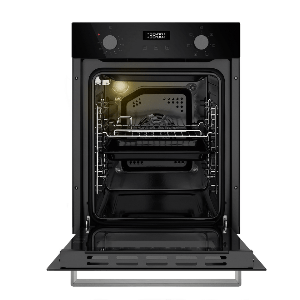Компактный электрический встраиваемый духовой шкаф объемом 51 л и шириной всего 45 см позволяет готовить ваши любимые блюда, разместив решетку или противень на одном из 5 уровней боковых направляющих. Внутреннее покрытие камеры выполнено из специальной легкоочищающейся эмали черного цвета.