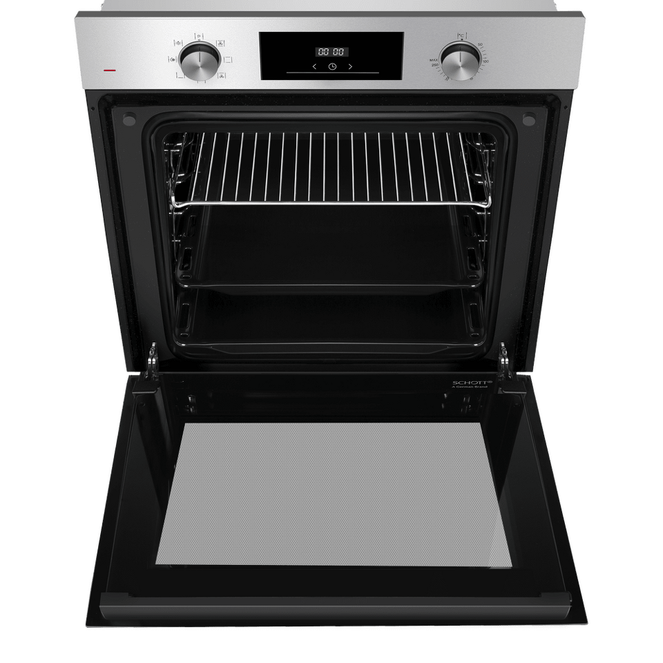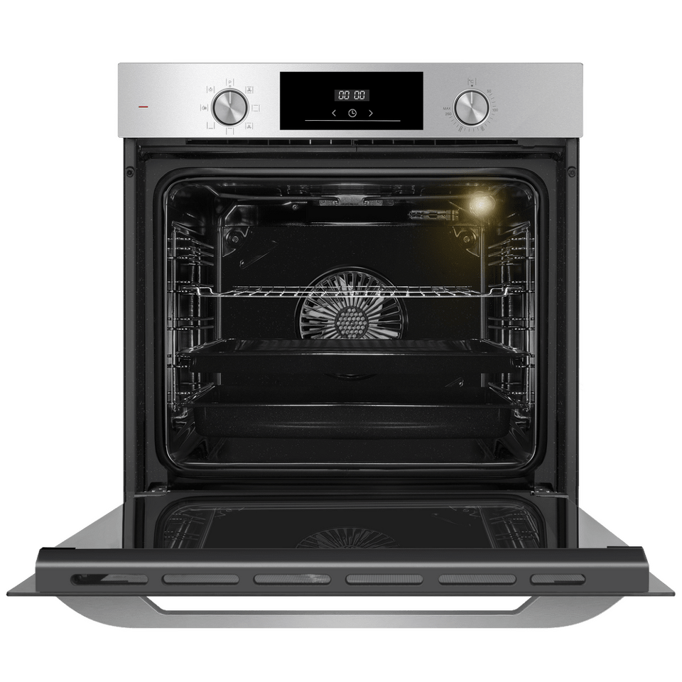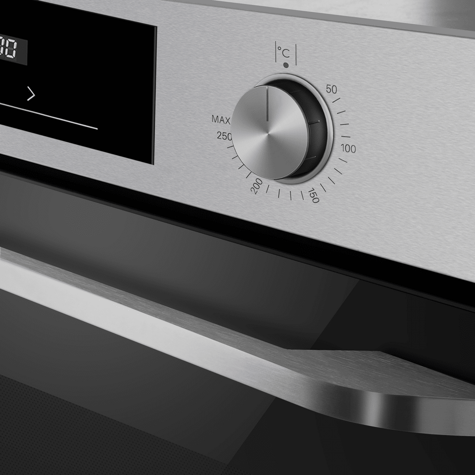 Управлять духовкой просто – механические утапливаемые переключатели в сочетании с современным сенсорным управлением обеспечивают комфортную и наиболее точную регулировку параметров приготовления. Встроенный таймер поможет не пропустить момент готовности блюда. А когда нужно проверить, как идёт процесс, достаточно бросить взгляд через тройное стекло дверцы – мощная подсветка прекрасно освещает всю камеру.