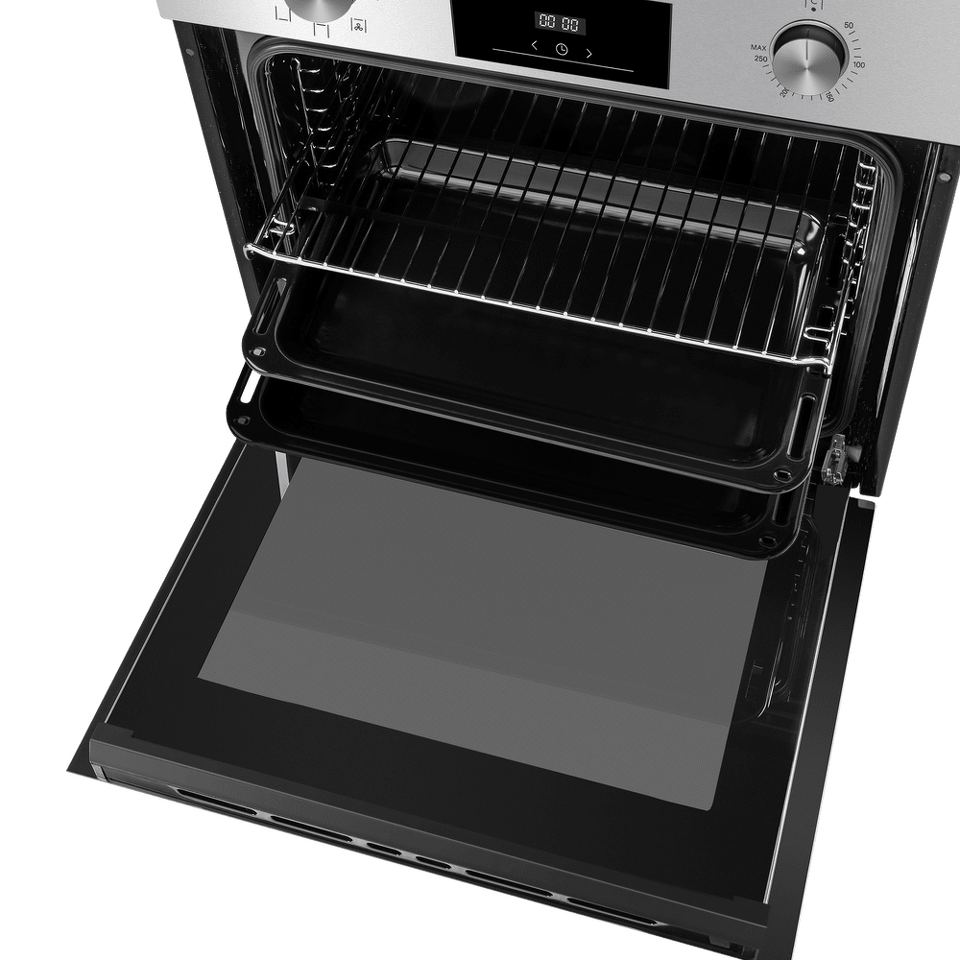 Несмотря на стандартные 60 см в ширину, этот духовой шкаф удивляет своим внушительным объемом – целых 78 литров полезного пространства. Такой вместительности хватит, чтобы одновременно приготовить несколько блюд: например, запечь мясо на противне, поставить рядом форму с овощами и еще оставить место для пирога.