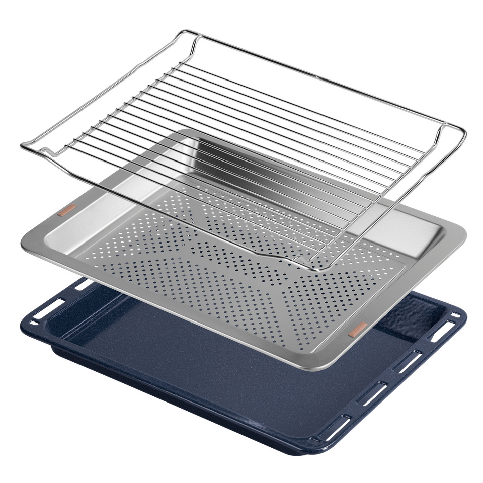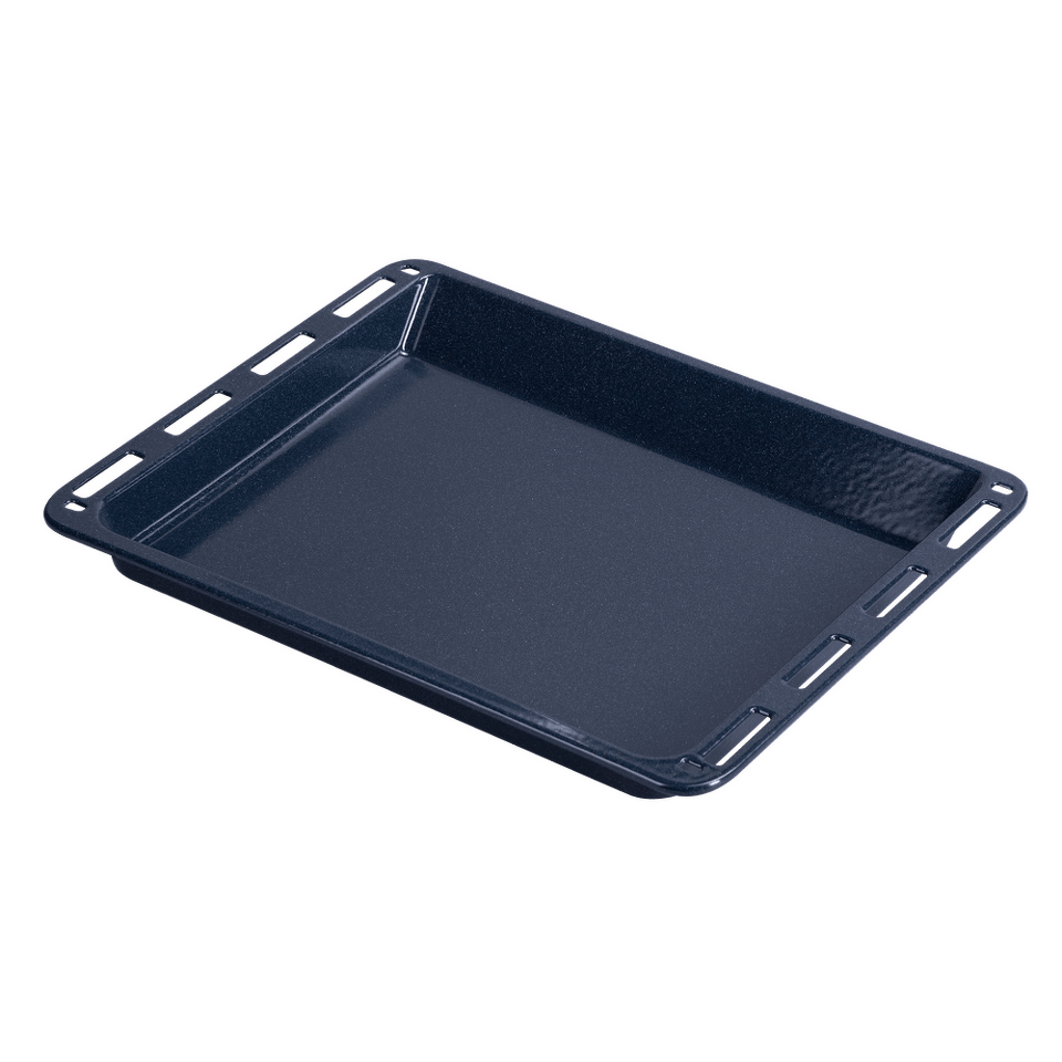 Наличие глубокого противня позволяет увеличить «полезный объём» духового шкафа. Высокие бортики глубокого противня не дают жиру разбрызгиваться и позволяют дольше сохранить блюдо горячим.