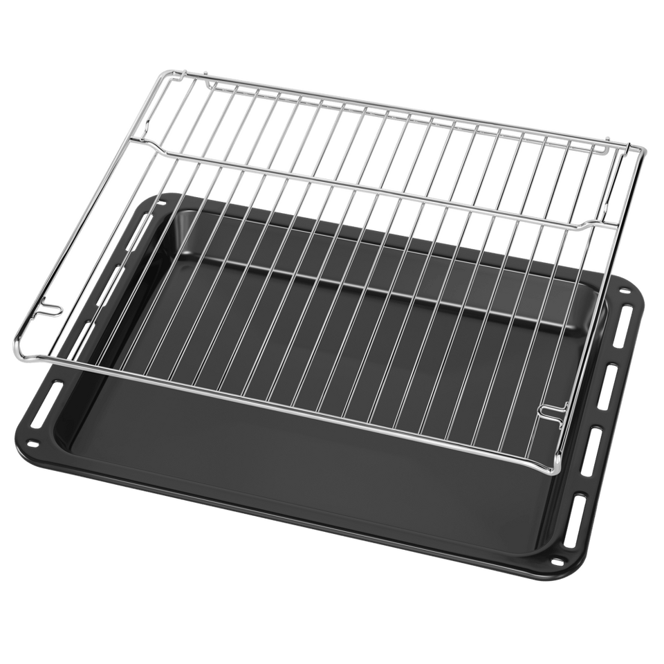 Наличие глубокого противня позволяет увеличить «полезный объём» духового шкафа. Высокие бортики глубокого противня не дают жиру разбрызгиваться и позволяют дольше сохранить блюдо горячим.