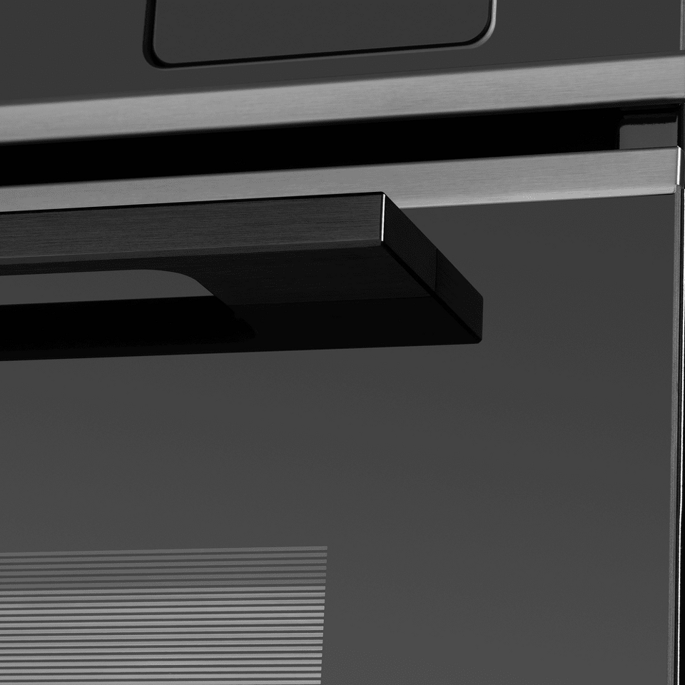 Трамп-линии на внутреннем стекле дверцы создают визуальный эффект непрозрачности фасада: при выключенном освещении не видно посуду, находящуюся внутри духовой камеры, а при включенном освещении можно в деталях рассмотреть весь процесс готовки.