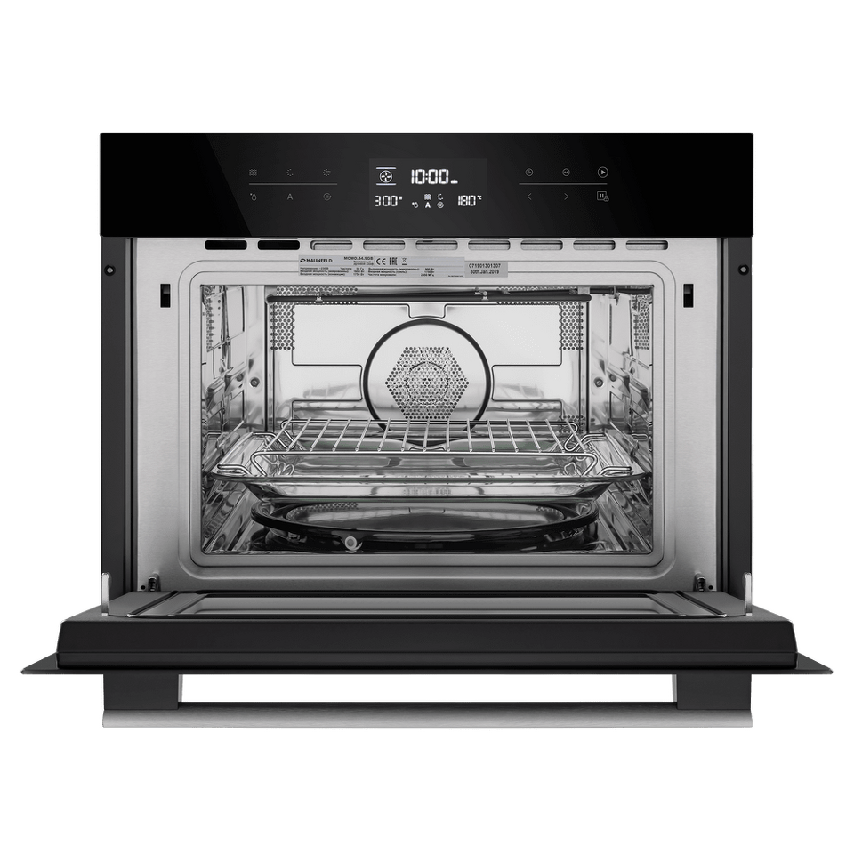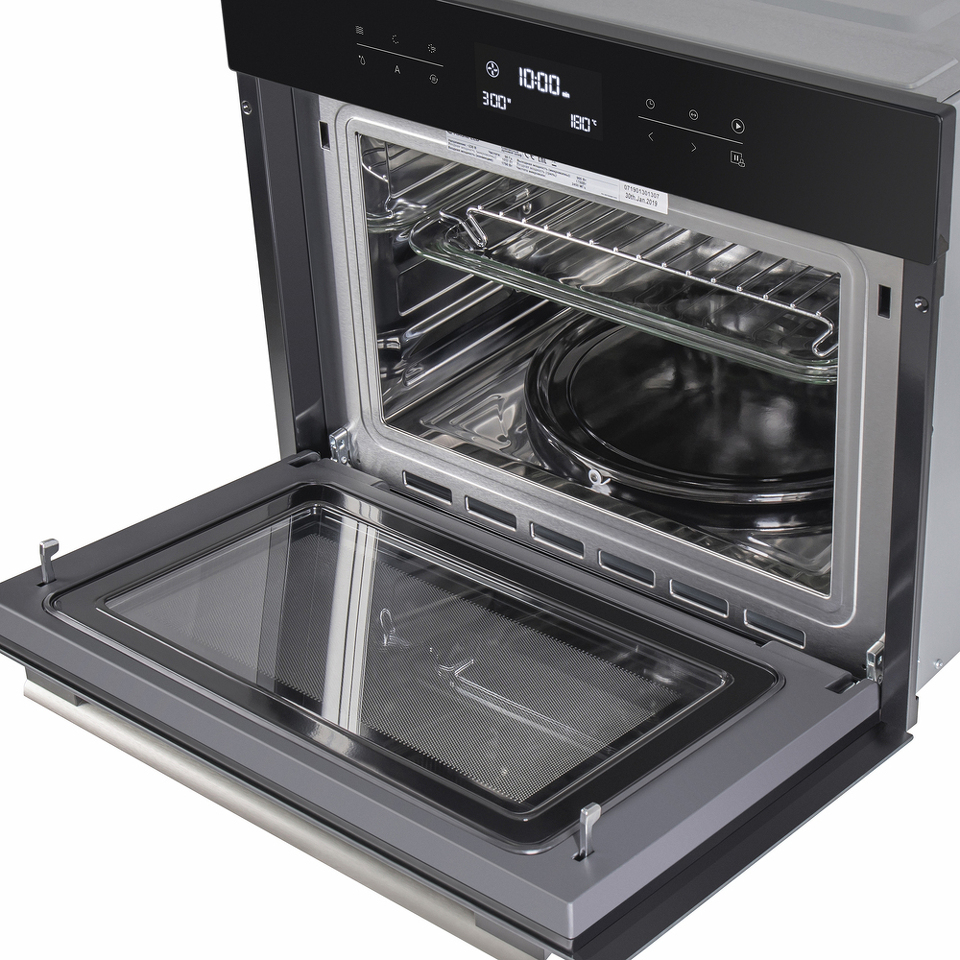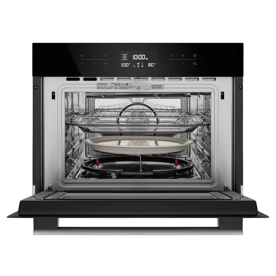 Сенсорное управление с дисплеем COLD WHITE позволит выбрать режим работы, температуру (50°-230°C), установить таймер и блокировку от детей. В данной модели предусмотрены следующие режимы работы: горячий воздух, горячий воздух и нижний нагрев, гриль (имеет 3 режима мощности), гриль+конвекция, горячий воздух + нижний гриль, микроволны, микроволны комби; автоматическая разморозка; предварительный разогрев, 13-программное Авто-меню.