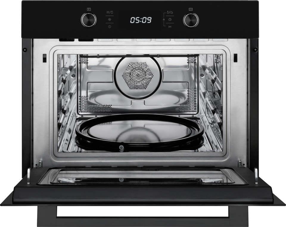Встраиваемый компактный духовой шкаф с микроволнами , который сочетает в себе сразу два полноценных устройства: духовой шкаф с конвекцией и грилем, а также микроволновую печь с отдельными набором настроек и возможностью использования комбинированного режима.