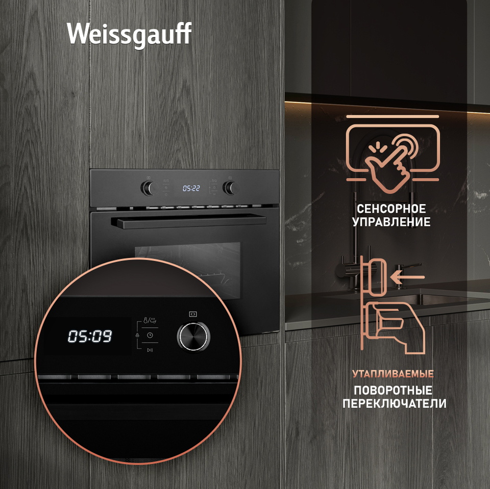 Удобный сенсорный дисплей с крупной индикацией - это настоящая гордость Weissgauff, ведь он не только является интуитивно понятным, но и великолепно реагирует на прикосновения с первого нажатия даже в том случае, если руки влажные или прохладные