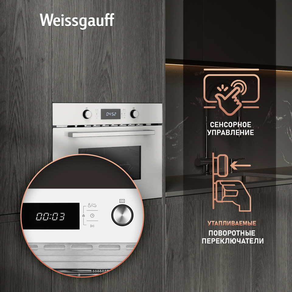 Удобный сенсорный дисплей с крупной индикацией - это настоящая гордость Weissgauff, ведь он не только является интуитивно понятным, но и великолепно реагирует на прикосновения с первого нажатия даже в том случае, если руки влажные или прохладные