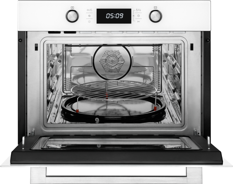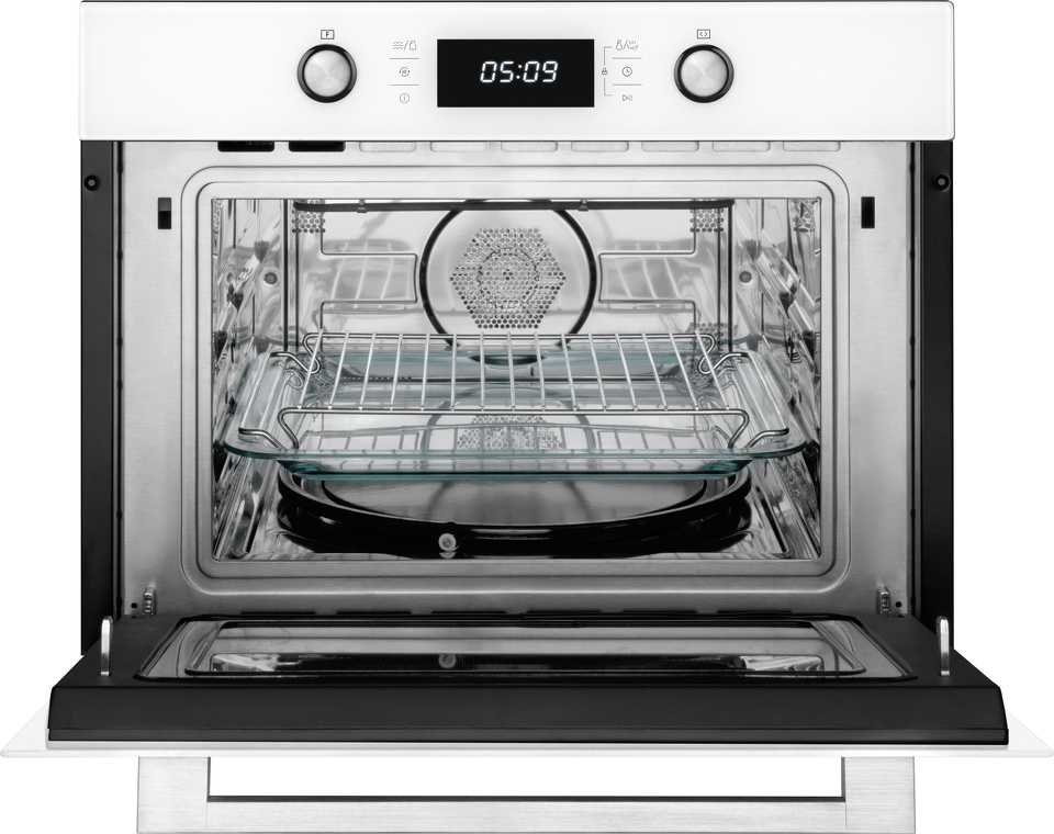 Встраиваемый компактный духовой шкаф с микроволнами , который сочетает в себе сразу два полноценных устройства: духовой шкаф с конвекцией и грилем, а также микроволновую печь с отдельными набором настроек и возможностью использования комбинированного режима.