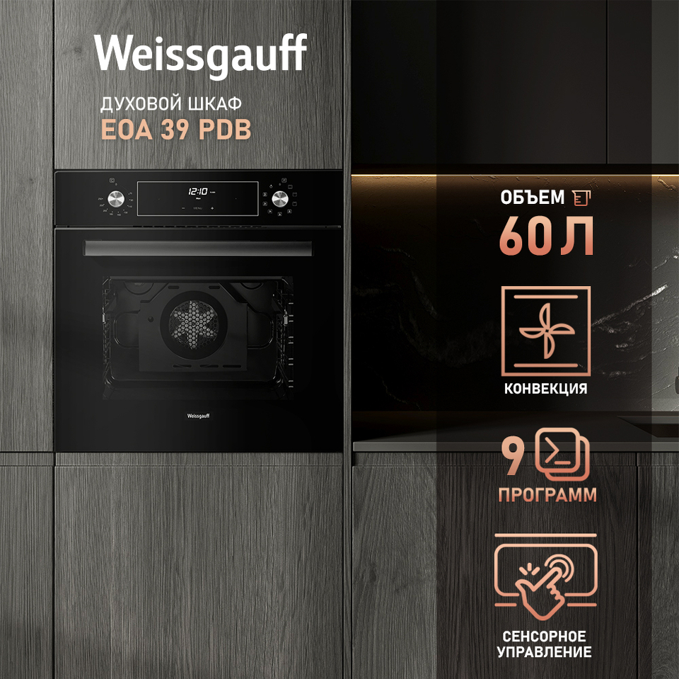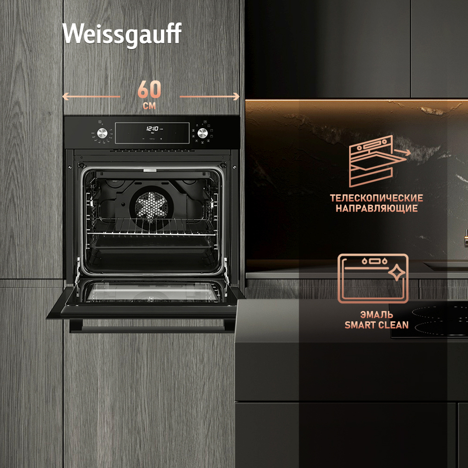 Объем XL 60 литров дает вам полную уверенность в том, что приобретая этот духовой шкаф, вы сможете разместить в нем сразу весь необходимый объем пищи, и даже профессионально работать на нескольких уровнях одновременно, порадовав себя и своих близких настоящим пиром, приготовленным в духовом шкафу Weissgauff на действительно ресторанном уровне.