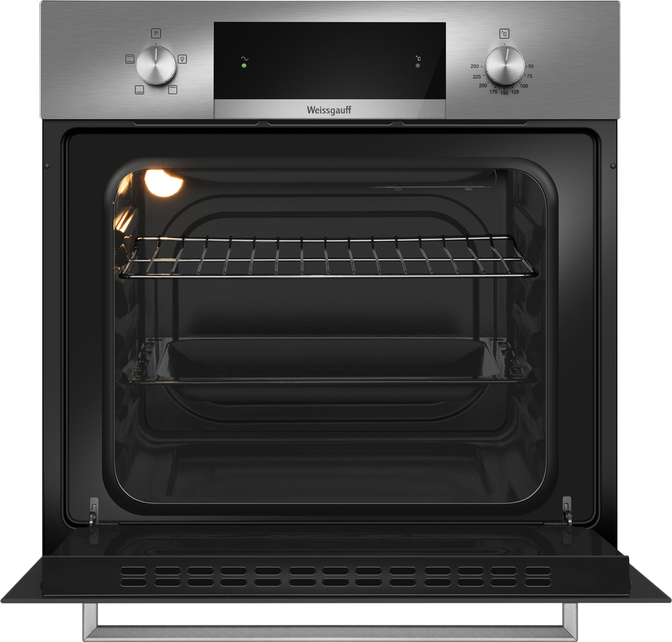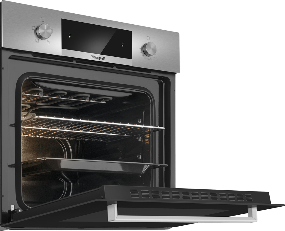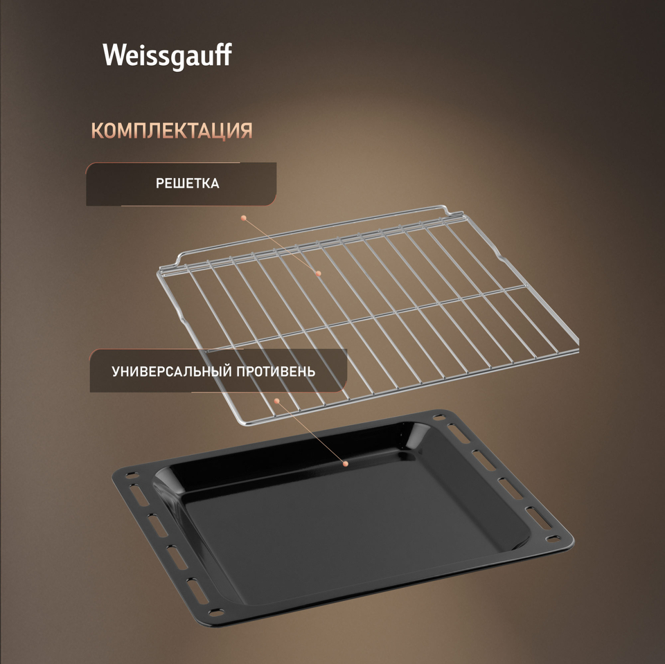Электрический духовой шкаф от Weissgauff, выполненный в цвете "нержавеющая сталь", оснащённый механическими поворотными рукоятками Soft Switch, тройным остеклением дверцы и 4 режимами, буквально олицетворяет собой уверенность в надёжном и функциональном оснащении вашей кухни!