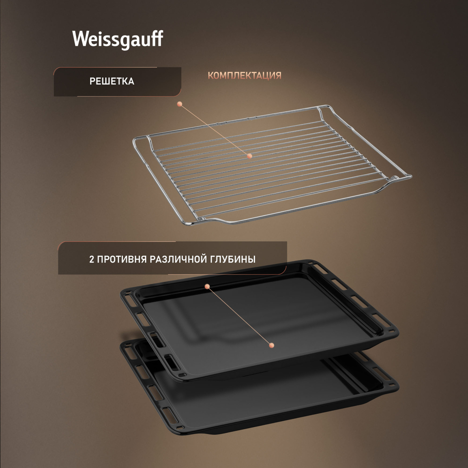 Класс энергопотребления А+ позволит вам еще раз убедиться в том, что Weissgauff способны создавать по-настоящему эффективные устройства, не расходующие при этом больше электричества, чем необходимо. Наслаждайтесь настоящими кулинарными шедеврами, приготовленными в нашем духовом шкафе, и при этом не тратьте лишние деньги на счета за электроэнергию - вот воплощение истинного немецкого подхода к созданию эффективной бытовой техники!